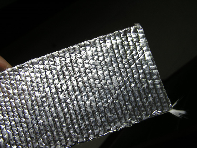 Aluminum foil composited fiberglass tape, can be made to self-adhesive or no-adhesive types, long-term use temperature below 550℃, fire insulation, corrosion resistance, electrical insulation, radiation proof, reflection of light, sealing, etc. It has good effect on Sealing and insulation for pipe, cable and machine bundle.